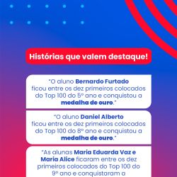 Foram 9 medalhas de ouro, 18 de prata e 5 de bronze, além de conquistas que merecem destaque especial: alunos entre os TOP 10 do Brasil em seus níveis! 🇧🇷✨