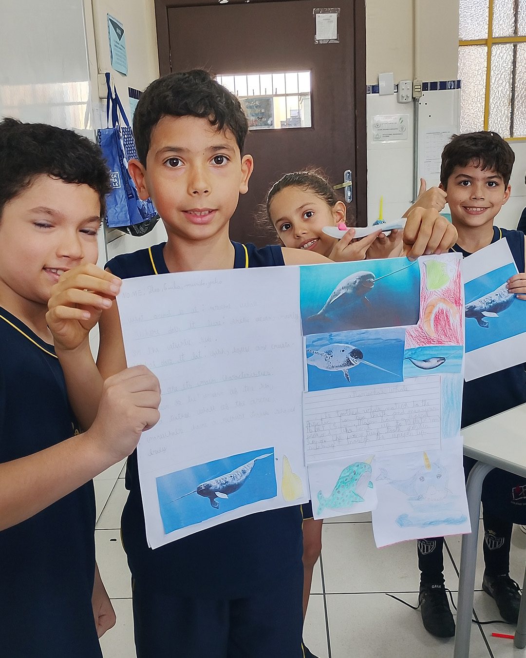 Dentro do programa bilíngue Systemic, eles foram estimulados a usar o inglês e pesquisar sobre os animais marinhos. 💙💬