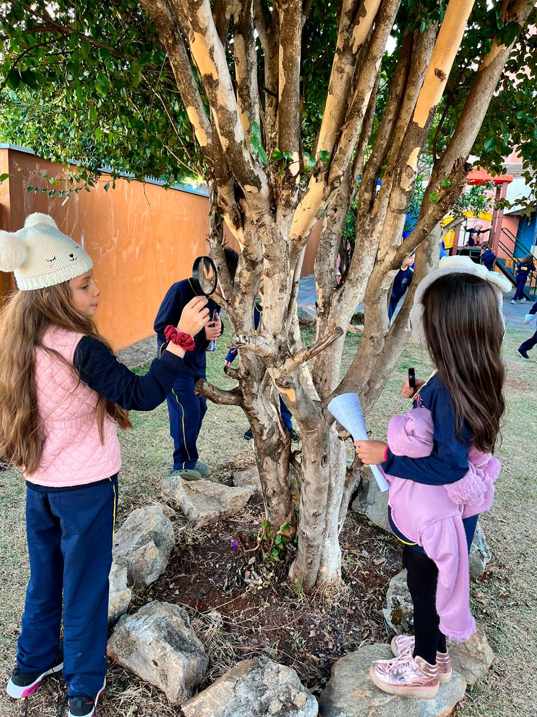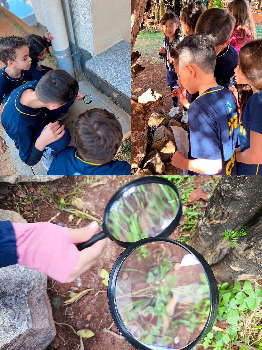 Os alunos do 3º ano participaram de uma atividade ao ar livre na área verde do Colégio, explorando a natureza com olhos atentos e curiosos. 🐞🦋