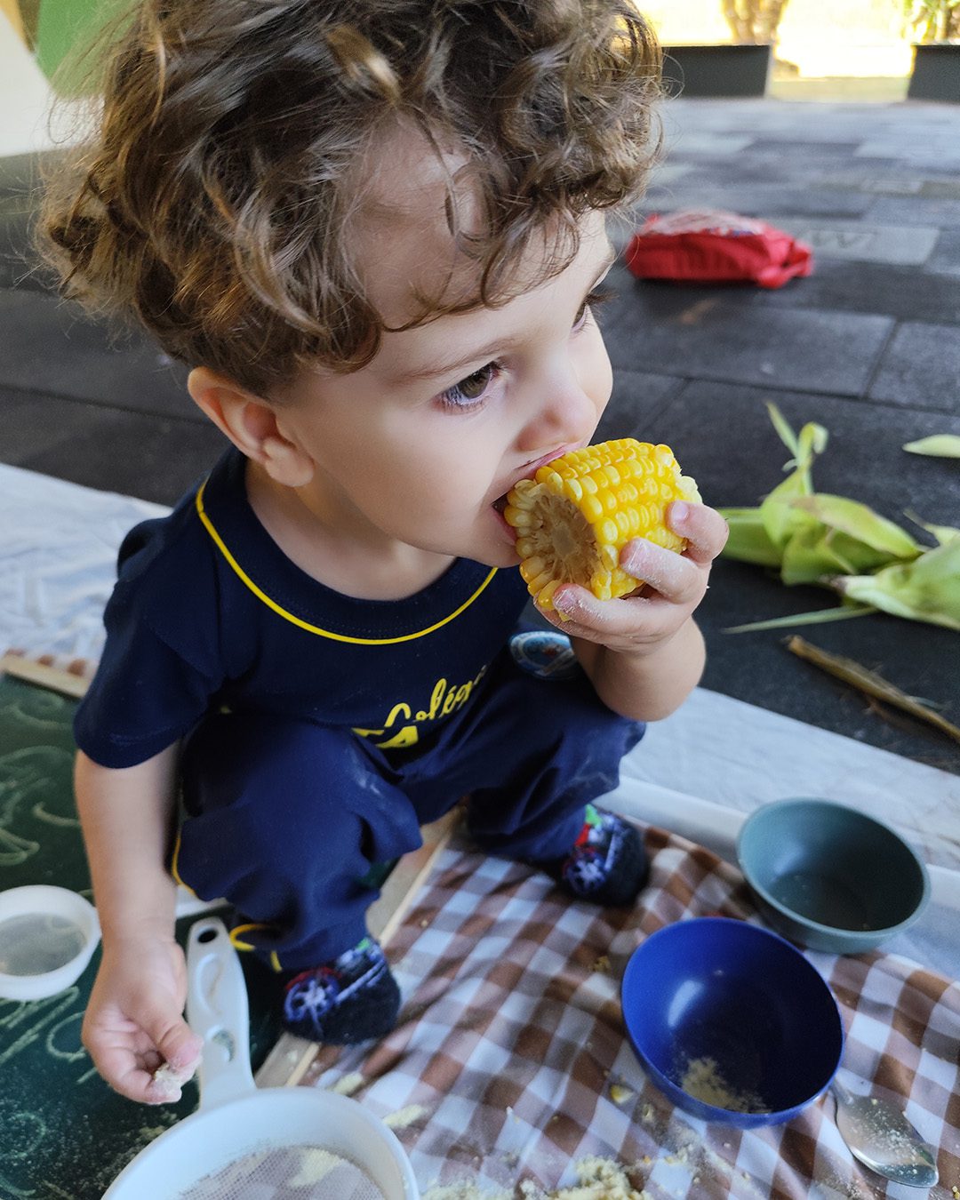 Entre texturas, cheiros e cores, nossas crianças exploraram o milho com as mãos, com os olhos… e com o coração.