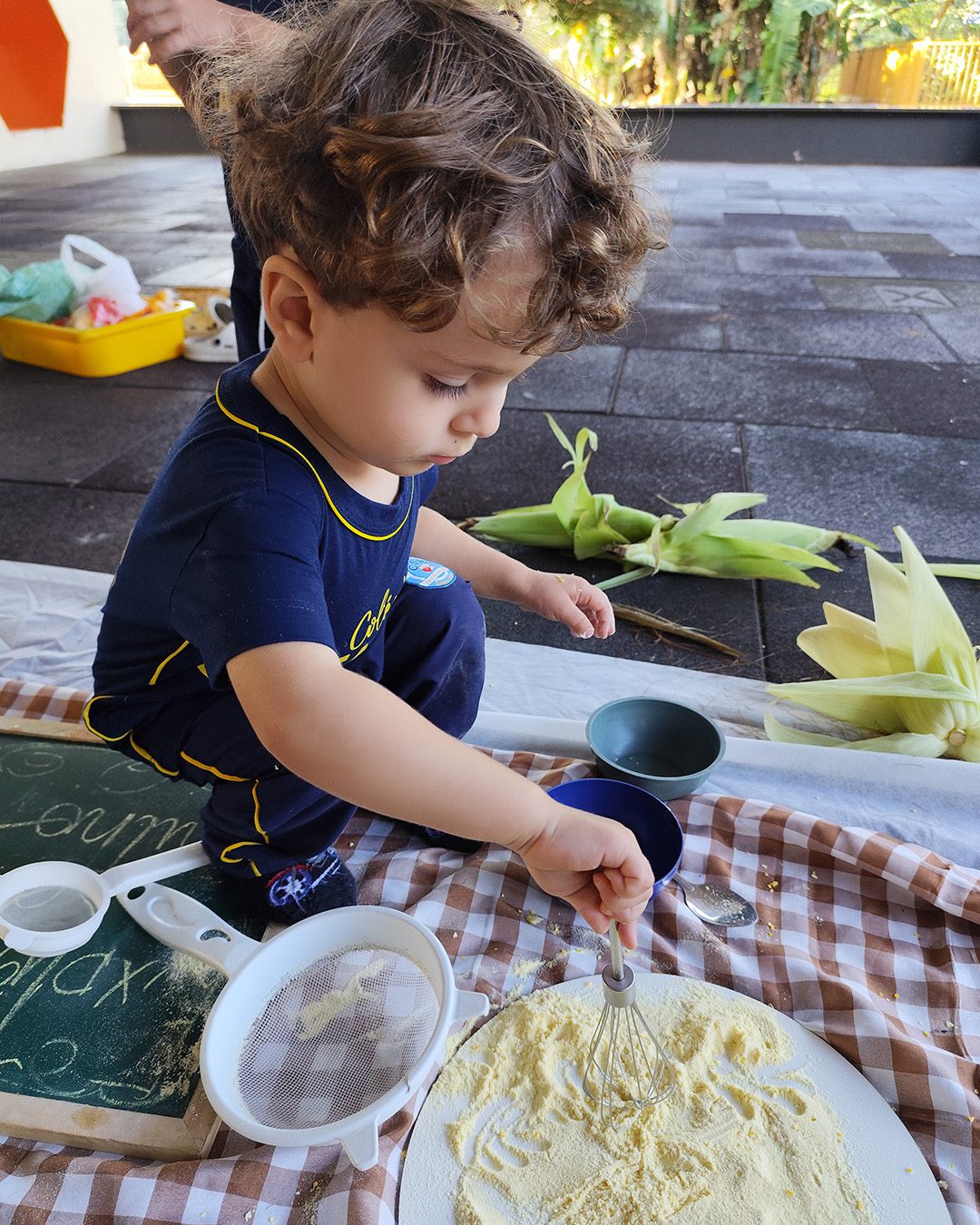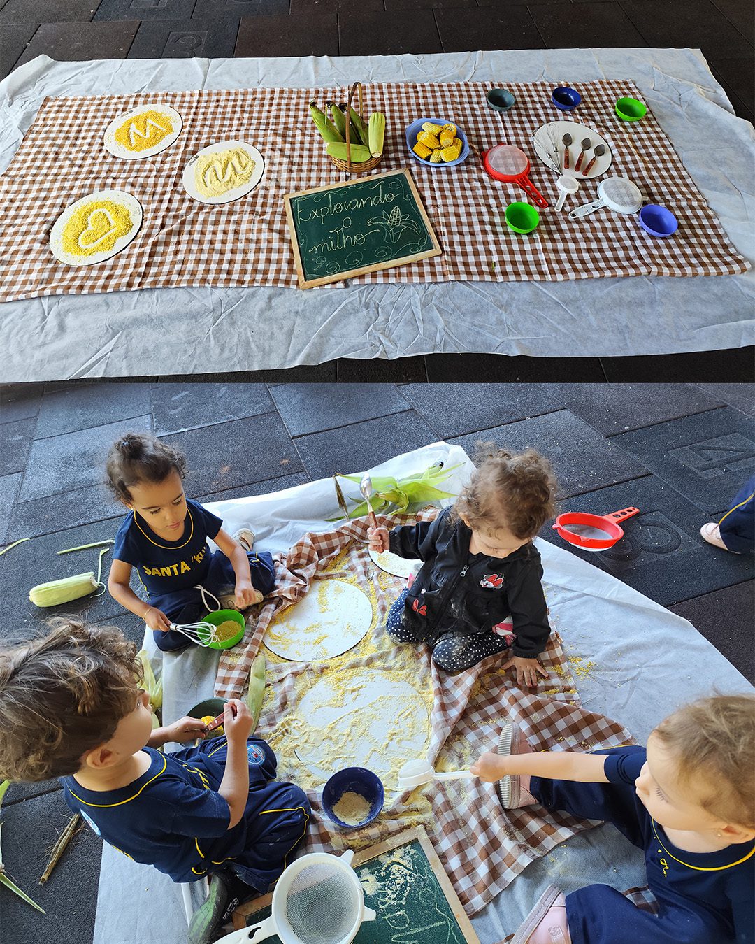 Entre texturas, cheiros e cores, nossas crianças exploraram o milho com as mãos, com os olhos… e com o coração.